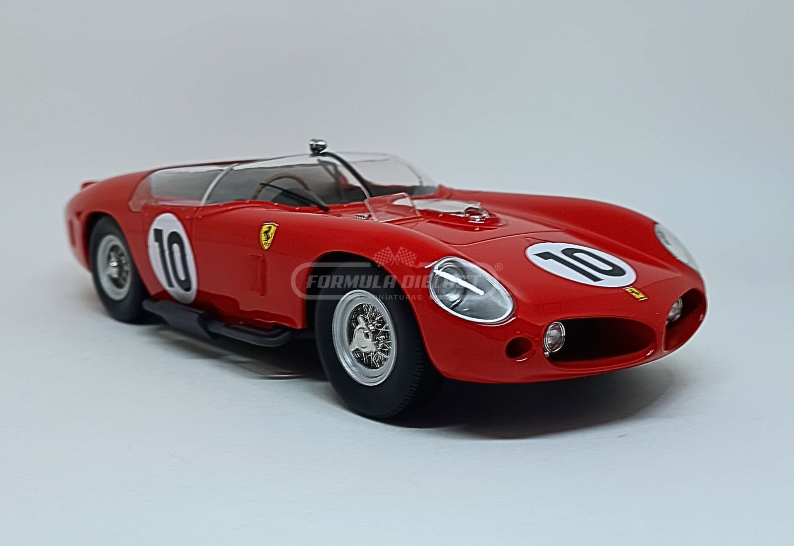Ferrari 250 TR61, motor 3.0L V12 aspirado com potência aprox. de 315 CV, #10 da equipe Scuderia Ferrari, pilotado por Olivier Gendebien e Phil Hill, vencedor das 24h de Le Mans de 1961.