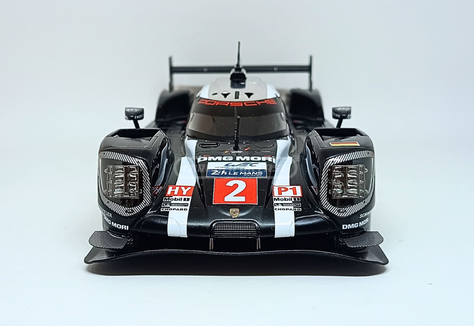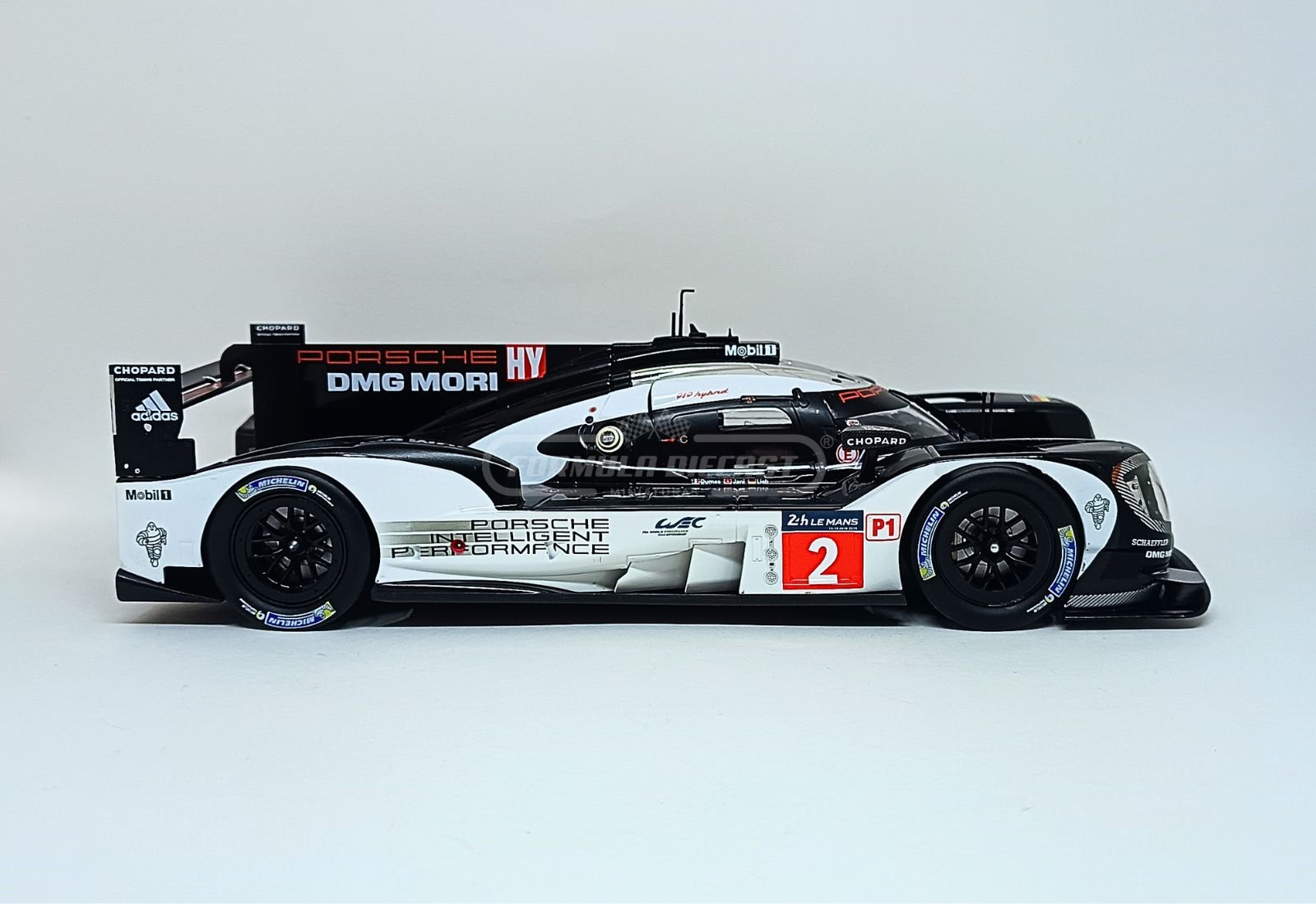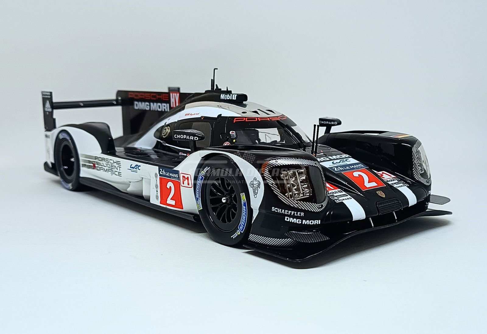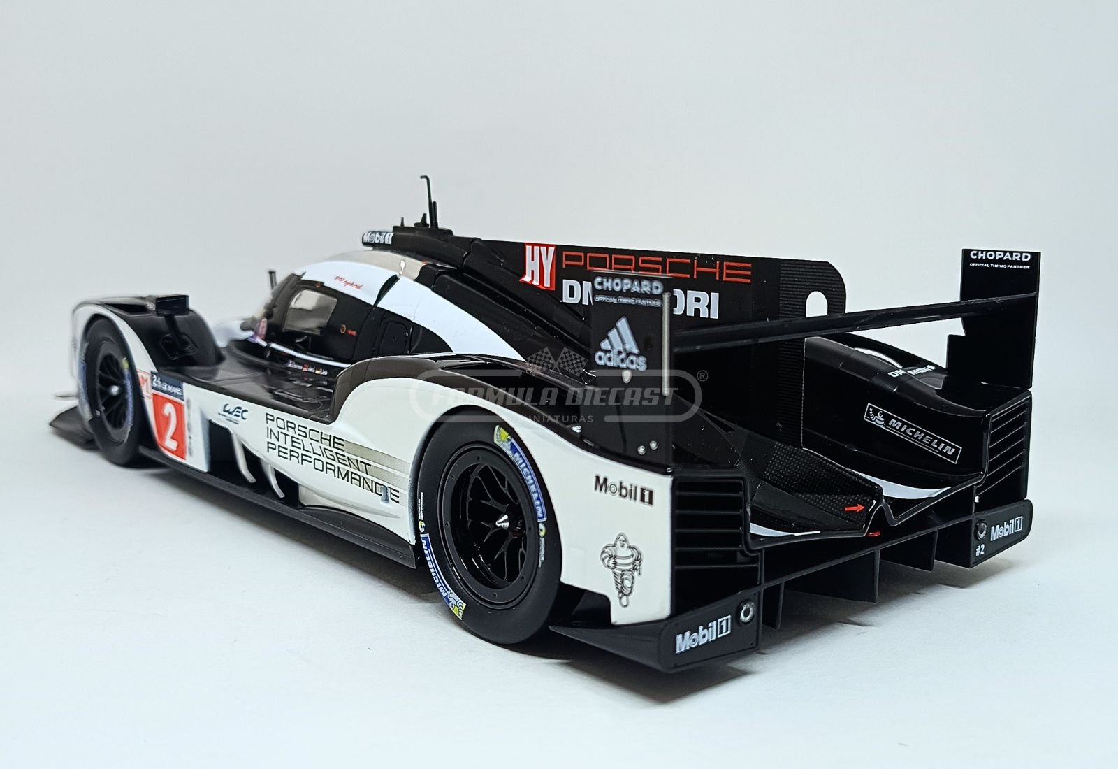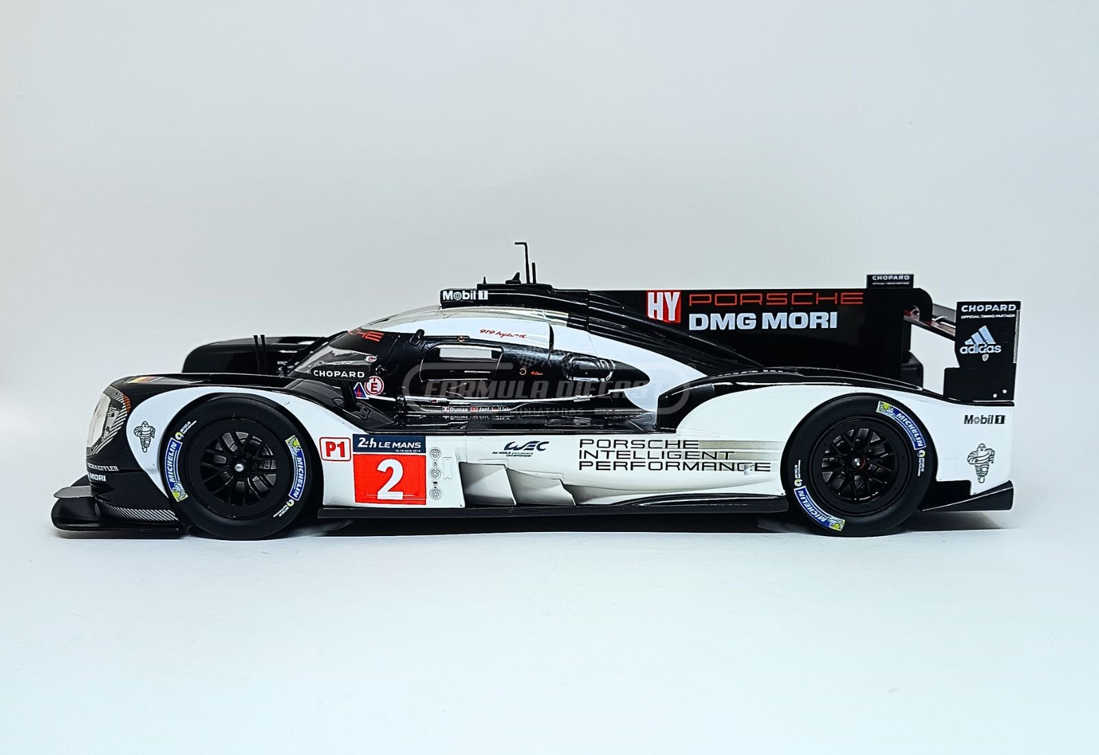 Porsche 919 Hybrid, com motor à combustão 2.0L V4 Turbo Híbrido e potência de 900 CV, #2 da equipe Porsche Team, pilotado por Marc Lieb, Romain Dumas e Neel Jani, vencedor das 24h de Le Mans 2016.